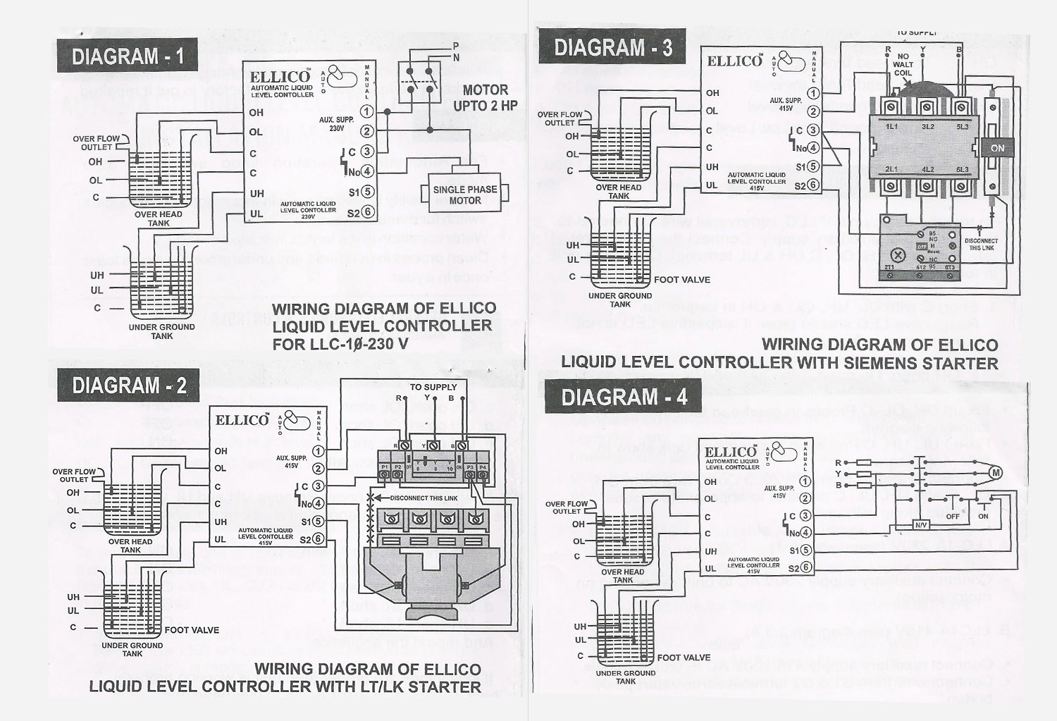 - Automatic Control of starter according to set water level in tanks