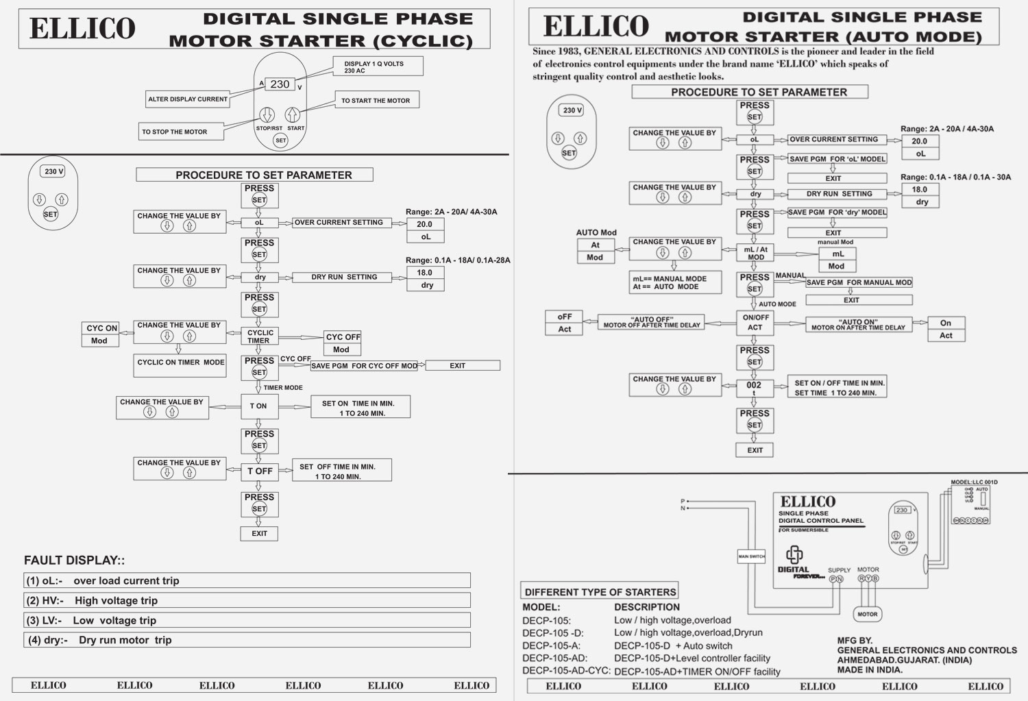 | Indication | Dryrun, O/L, OH, OL, UH, UL, High Volt, Low Volt |