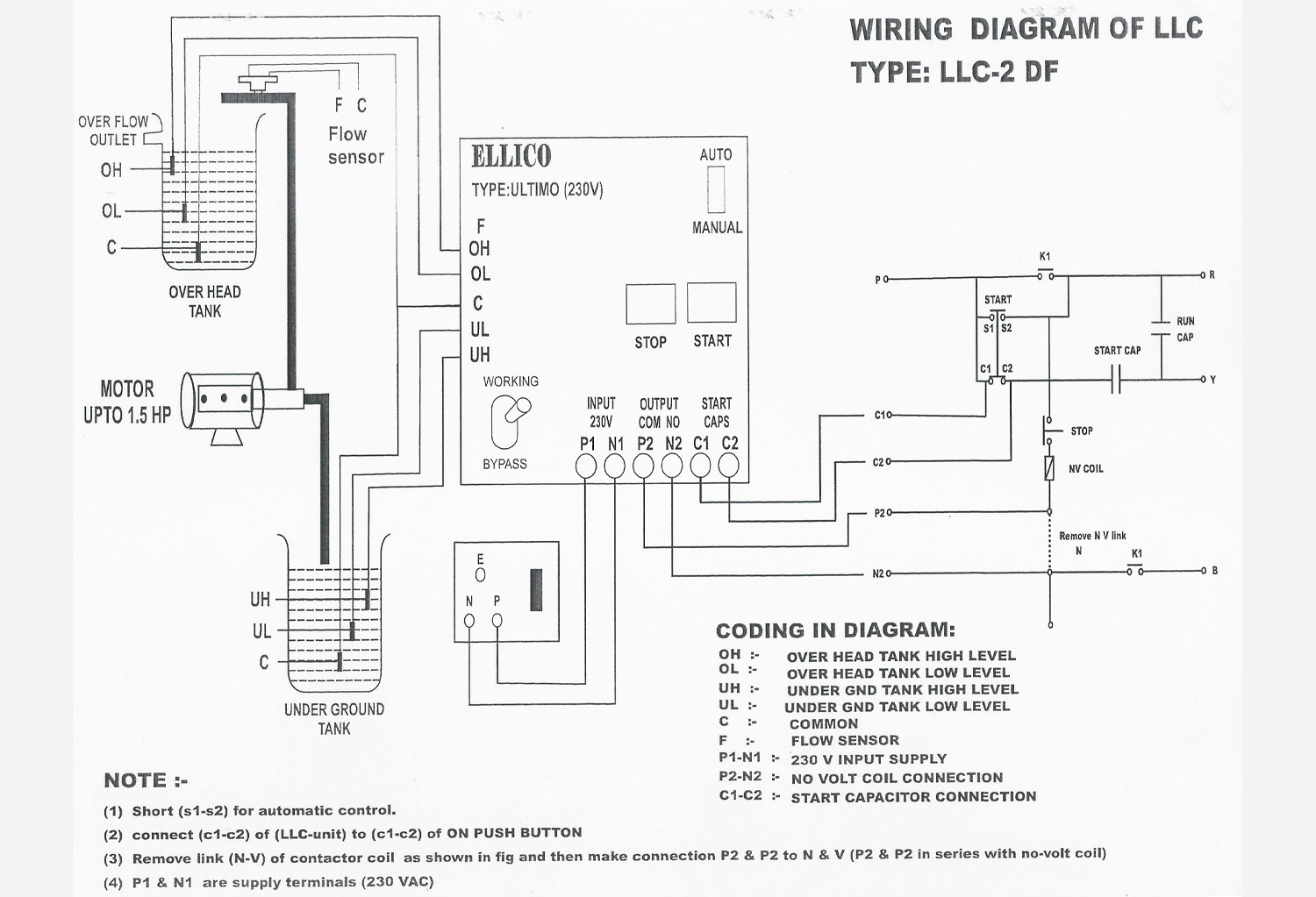 - Automatic control of starter according to set water level in tank
